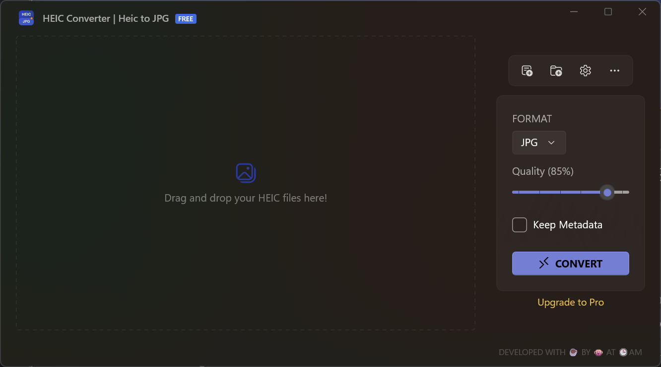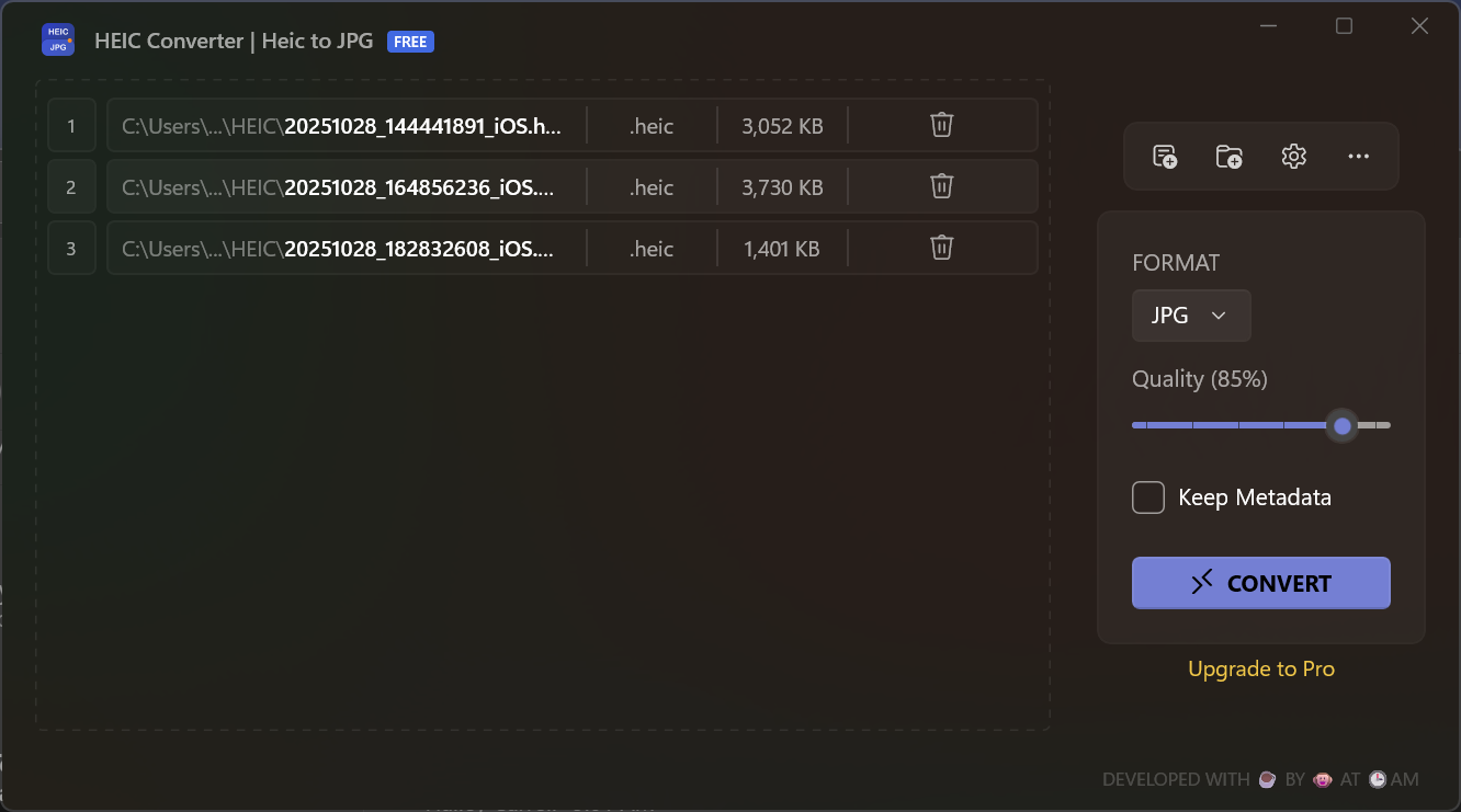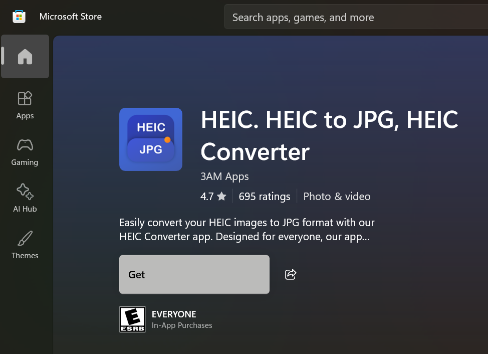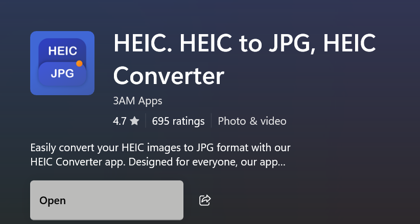 We recommend using the HEIC Converter by 3AM Apps from the Microsoft Store.