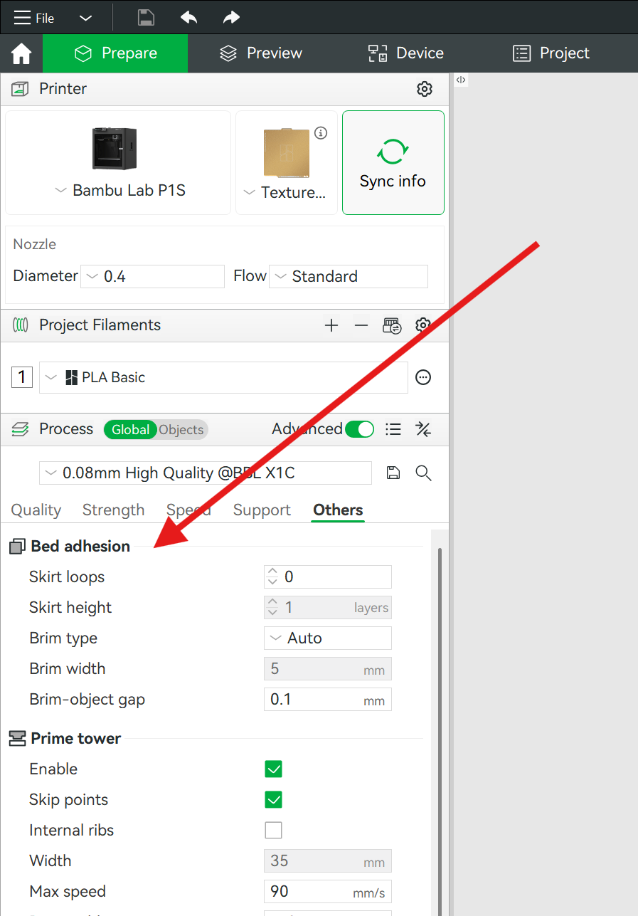 In Bambu Studio, these options are located in Others >> Bed Adhesion.