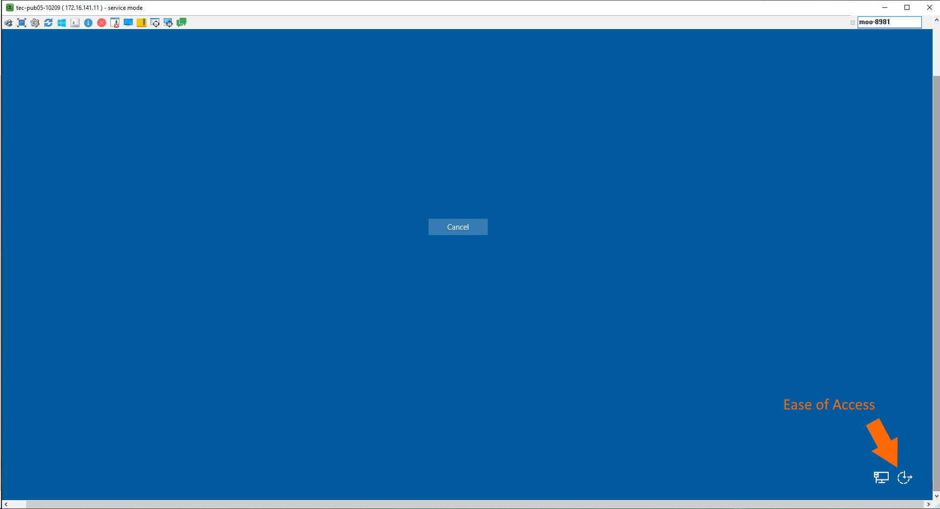 Press CTRL+ALT+DEL and you will see a lock screen with just a cancel button and two icons in the lower right corner: Network and Ease of Access