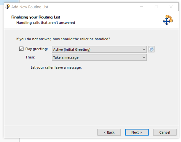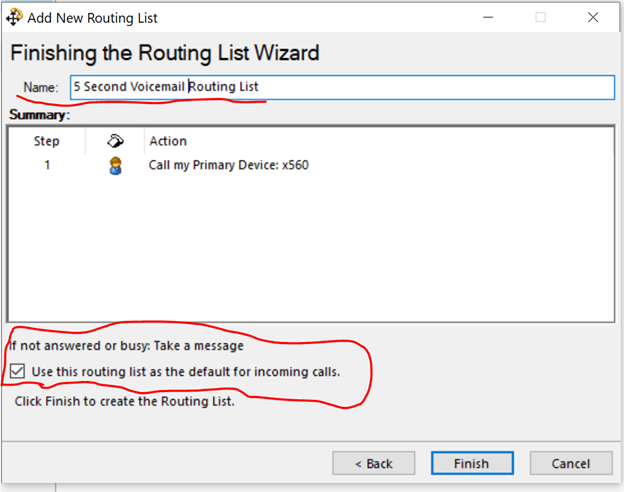 Name your Routing List and select the Use this routing list as the default for incoming calls >> Finish