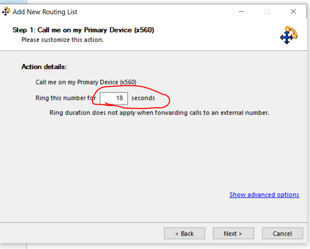Select the number of seconds for the phone to ring before going to voicemail >>Next