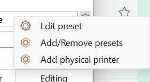 - Click the Gear Icon on the right and choose Add/Remove Presets