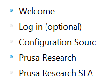 - The Configuration Wizard will load. Click the Prusa Research section.